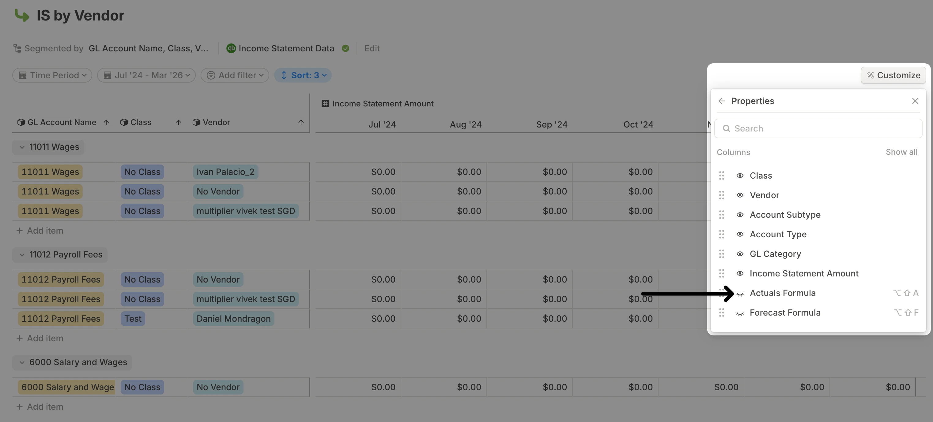 Option+Shift+Ato hide or show the Actual Formula column.Option+Shift+Fto hide or show the Forecast Formula column.