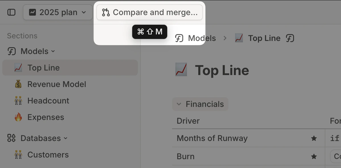 Cmd / Ctrl + Shift + M to open the Compare and merge modal instantly.
